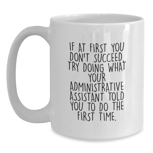 Funny Administrative Assistant Gifts from Friends, White Coffee Mug for Graduation, 'If At First You Don't Succeed...' Quote, 11oz/15oz Ceramic, Perfect for Coworkers, Family, or Women
