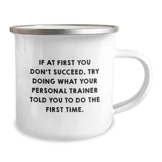 Funny Personal Trainer Gifts from Friends for Graduation, 'If At First You Don't Succeed, Try Doing What Your Personal Trainer Told You To Do The First Time.' Stainless Steel Camping Mug