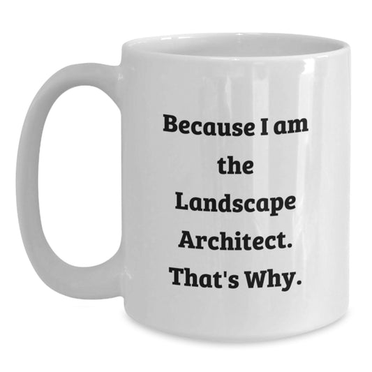 Funny Landscape Architect Gifts from Friends, 'Because I Am The Landscape Architect. That's Why.' White Coffee Mug for Graduation, Unique Gifts for Men, Women, Coworkers, Family