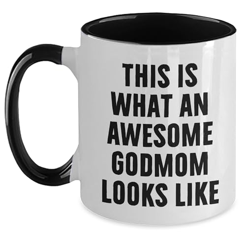 This Is What an Awesome Godmom Looks Like – Funny Two-Tone Ceramic Coffee Mug Gift for Godmothers, Cute and Bold Present from Godchild for Birthday, Mother’s Day, or Just Because