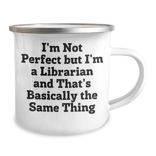 Funny Librarian Gifts from Friends Graduation Unique Librarian Mug, I'm Not Perfect But I'm A Librarian And That's Basically The Same Thing, 12 Ounce Stainless Steel with Enamel Finish