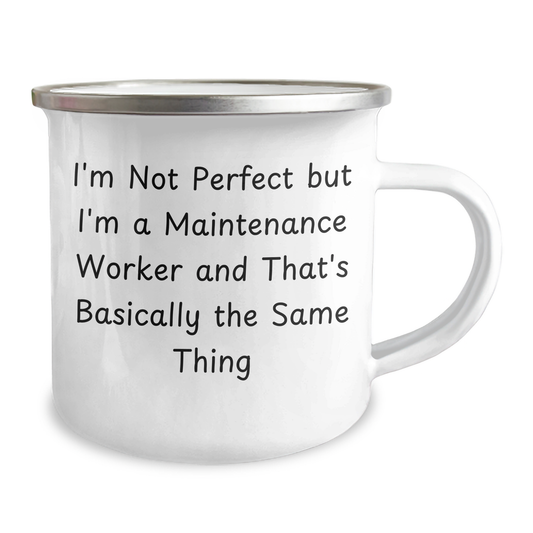 Funny Maintenance Worker Gifts from Friends and Family, 'I'm Not Perfect' Camping Mug for Graduation, 12 oz Stainless Steel with Enamel Finish