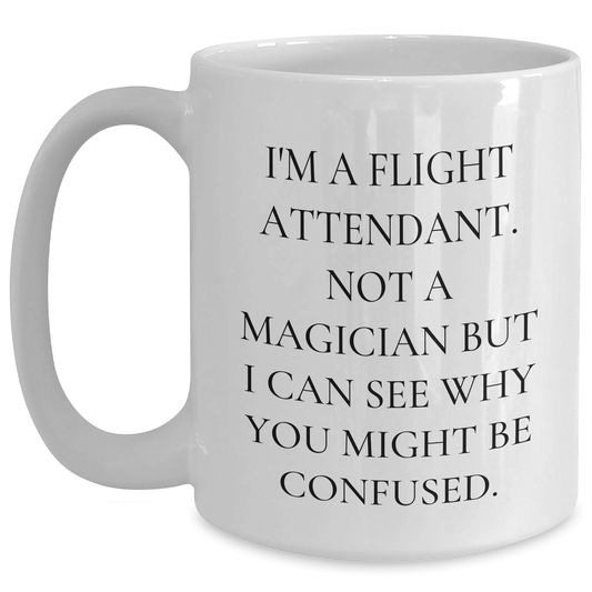 Flight Attendant Humor, Funny White Coffee Mug Gifts from Friends to Flight Attendants, 11oz or 15oz Capacity, Graduation Unique Gifts