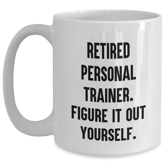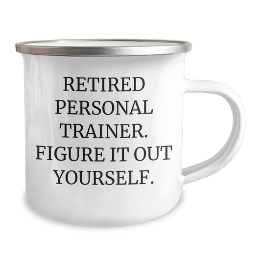 Funny Personal Trainer Gifts from Friends to Graduating Personal Trainers - Camping Mug with 'Retired Personal Trainer. Figure It Out Yourself.' Quote