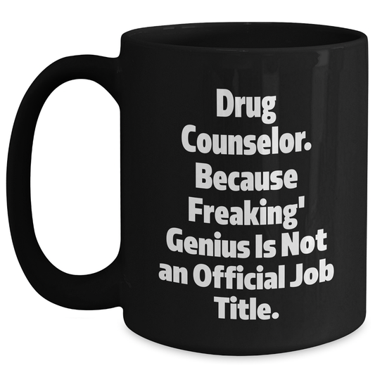 Gifts from Family to Drug Counselor, 'Drug Counselor. Because Freaking' genius Is Not An Official Job Title.' Quote, Black Coffee Mug for Graduation