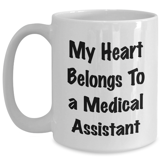Funny Medical Assistant Gifts from Friends to Medical Assistants, My Heart Belongs To A Medical Assistant Quote on White Coffee Mugs, Graduation Unique Gifts