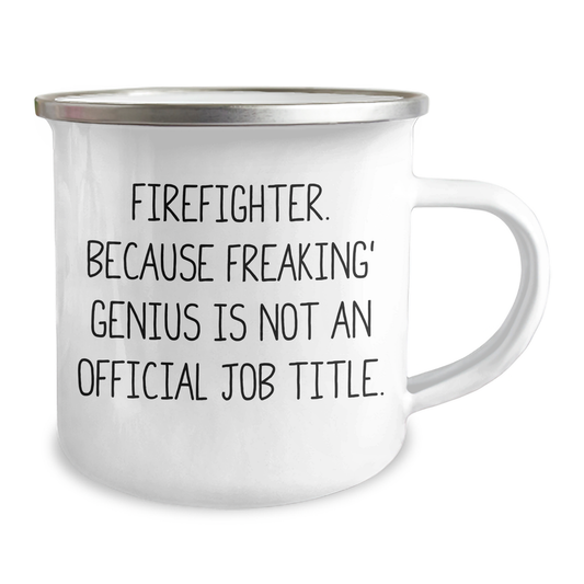 Funny Firefighter Gifts from Family to Firefighter, Camping Mug for Graduation, 'Firefighter. Because Freaking' genius Is Not An Official Job Title.' Quote