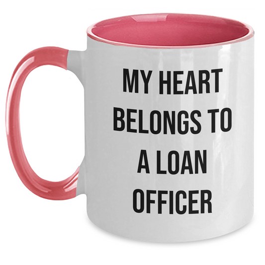 Funny Loan Officer Gifts from Friends to Loan Officer Graduation Unique Two Tone Coffee Mugs - 'My Heart Belongs To A Loan Officer'