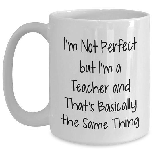 Funny Teacher Gifts, I'm Not Perfect But I'm A Teacher And That's Okay, White Coffee Mug for Graduation, Gifts from Friends, Gifts for Teachers