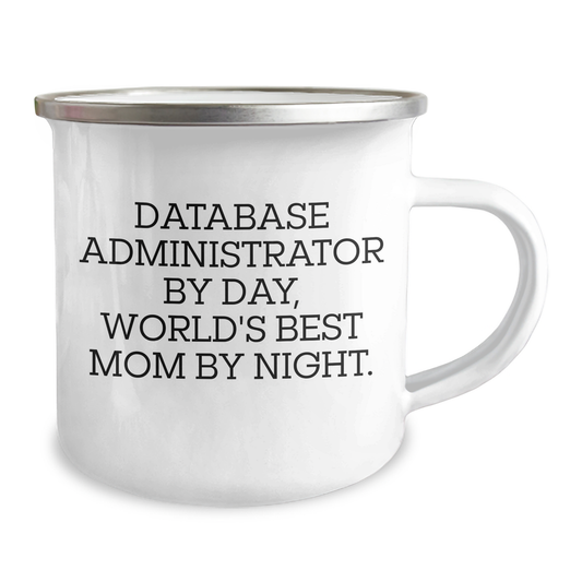 Database Administrator Gifts for Graduation - Funny Camping Mug for Dad, 'Database Administrator By Day, World's Best Mom By Night.'