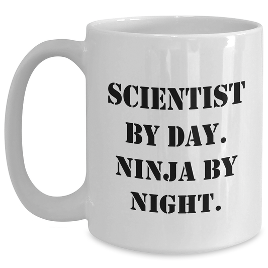Funny Scientist Gifts for Men - White Coffee Mug, Scientist By Day. Ninja By Night. - Father's Day Unique Gifts from Family