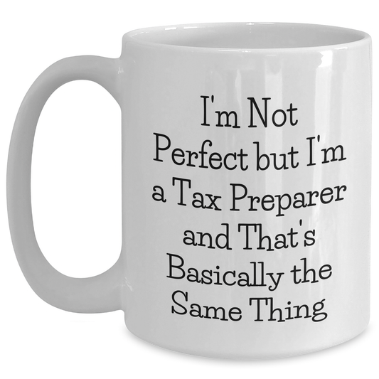 Tax Preparer Humor Gifts from Friends to Gifts for Tax Preparer, Funny White Coffee Mug, 'I'm Not Perfect But I'm A Tax Preparer And That's Basically The Same Thing' - Graduation Unique Gifts