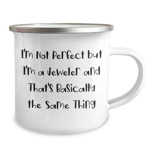 Funny Jeweler Gifts for Friends, Camping Mug with Quote 'I'm Not Perfect But I'm A Jeweler And That's Basically The Same Thing' from Family to Graduates, Unique Gifts from Friends to Coworkers