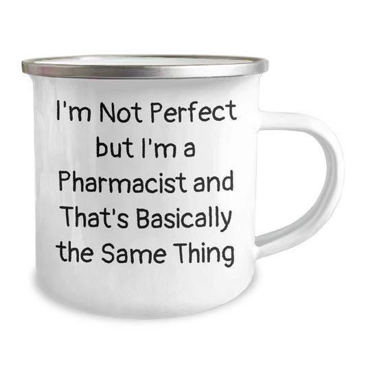 Funny Pharmacist Gifts, I'm Not Perfect But I'm A Pharmacist And That's Basically The Same Thing, 12 oz Camping Mug for Graduation, Gifts from Family to Pharmacist