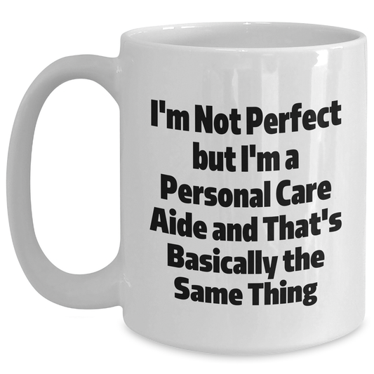Funny Personal Care Aide Gifts from Friends, Gifts for Personal Care Aide, White Coffee Mug, I'm Not Perfect But I'm A Personal Care Aide And That's Basically The Same Thing Graduation Unique Gifts