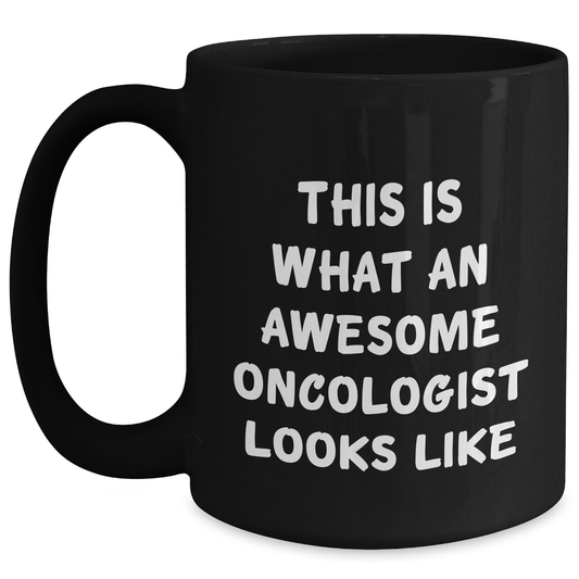Oncologist Gifts, Funny Quote, Black Coffee Mug, Gifts from Men, Gifts for Oncologist - 'This Is What An Awesome Oncologist Looks Like'