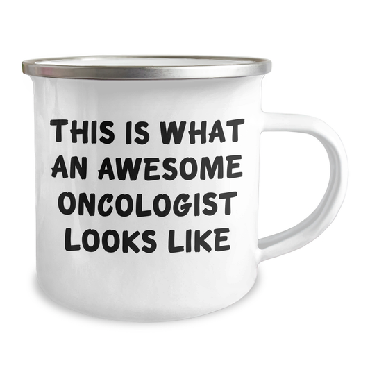 Inspirational Oncologist Gifts from Friends - 'This Is What An Awesome Oncologist Looks Like' Quote on Stainless Steel Camping Mug, 12 oz Capacity, Father's Day Unique Gifts