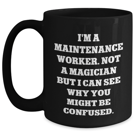 Funny Maintenance Worker Gifts from Friends for Father's Day - Black Coffee Mug with Quote 'I'm A Maintenance Worker. Not A Magician...'