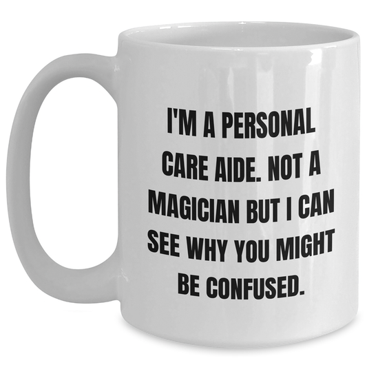 Personal Care Aide Humor White Coffee Mug, Funny Gifts from Family to Dad, Unique Father's Day Unique Gifts for Men, Gifts from Women, Funny Quote Mug, 11oz or 15oz Capacity