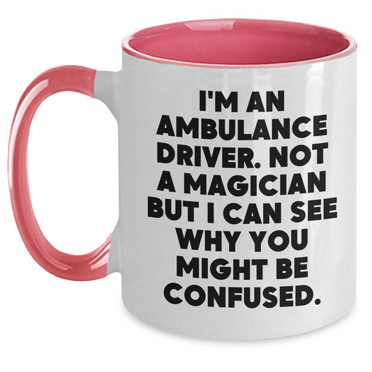 Ambulance Driver Humor Funny Gift from Friends for Ambulance Driver Two Tone Coffee Mug, 'I'm An Ambulance Driver. Not A Magician...'