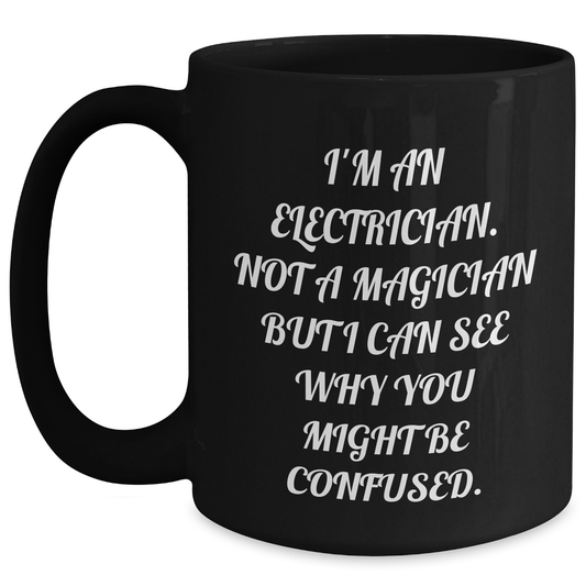 Funny Electrician Gifts for Dad, 'I'm An Electrician. Not A Magician But I Can See Why You Might Be Confused.' Black Coffee Mug, Unique Father's Day Unique Gifts from Men to Electrician