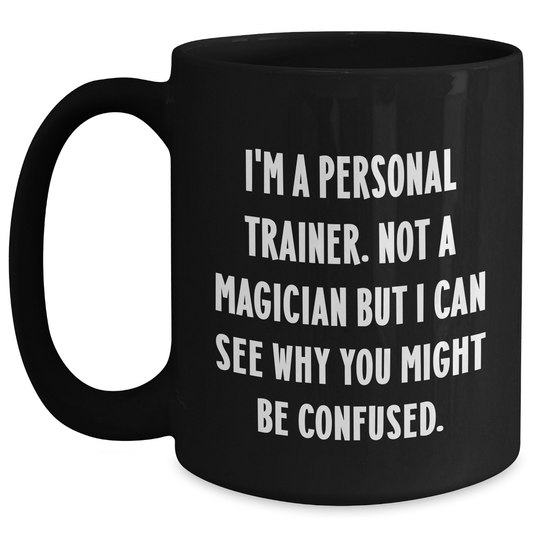 Funny Personal Trainer Gifts for Men from Friends, Unique Black Coffee Mug for Father's Day - I'm A Personal Trainer. Not A Magician