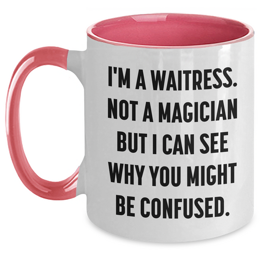 Funny Waitress Gifts from Friends to Waitress, I'm A Waitress. Not A Magician But I Can See Why You Might Be Confused., Two Tone Coffee Mugs for Father's Day