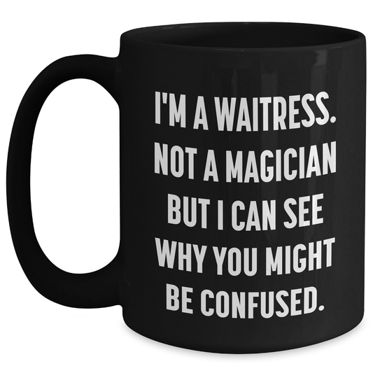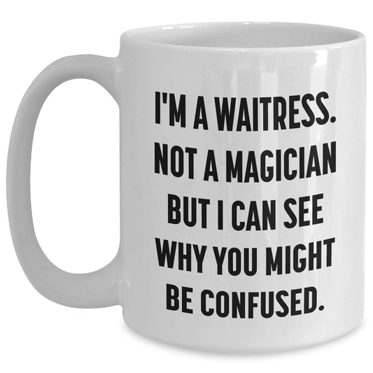 Funny Waitress Gifts from Friends, Coworkers or Family - I'm A Waitress. Not A Magician But I Can See Why You Might Be Confused. White Coffee Mug for Waitress, Father's Day Unique Gifts