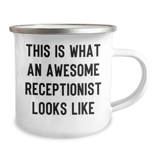 Funny Receptionist Gifts from Friends, Father's Day Unique Gifts for Him, This Is What An Awesome Receptionist Looks Like, 12 oz Camping Mug