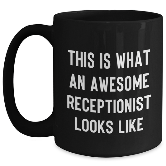 Funny Receptionist Gifts, 'This Is What An Awesome Receptionist Looks Like' Black Coffee Mug for Men, Gifts from Family, Unique Father's Day Unique Gifts for Coworkers