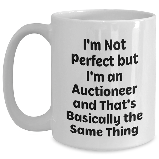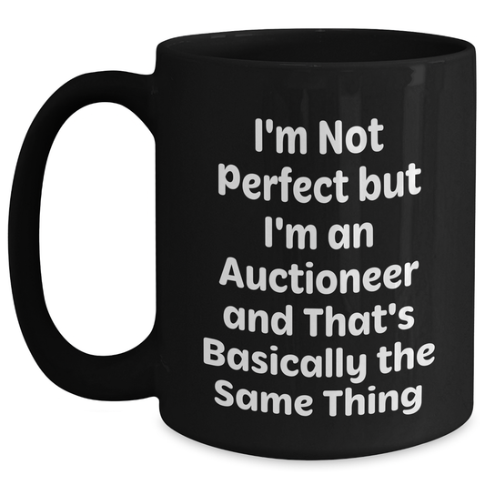 Funny Auctioneer Gifts from Friends for Father's Day - Black Coffee Mug, I'm Not Perfect But I'm An Auctioneer And That's Basically The Same Thing