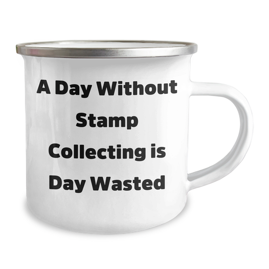 Funny Stamp Collecting Gifts for Men, 'A Day Without Stamp Collecting Is Day Wasted' Camping Mug, Unique Father's Day Unique Gifts from Family, Friends, or Coworkers