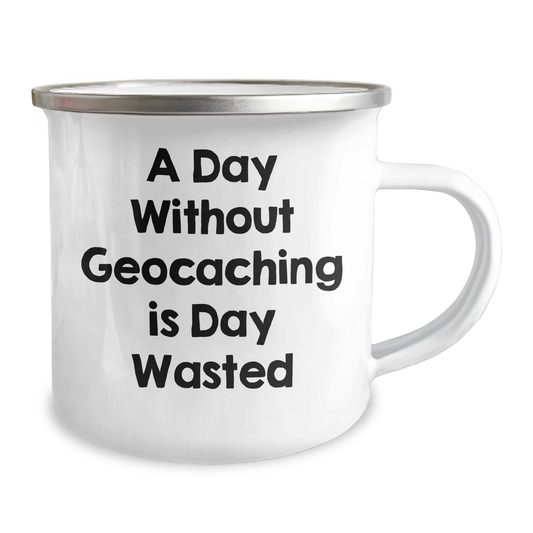 Geocaching Enthusiasts' Delight, Funny 'A Day Without Geocaching Is Day Wasted' Gifts for Men on Father's Day, Camping Mug