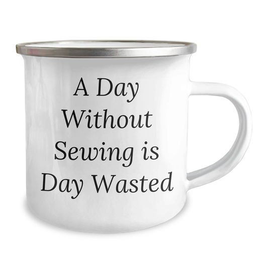 Sewing Enthusiasts' Delight, Funny Two Tone Coffee Mug Gifts from Men for Father's Day, 'A Day Without Sewing Is Day Wasted' Quote, Sewing Lovers, Gifts for Sewing Enthusiasts, Unique Coffee Mug