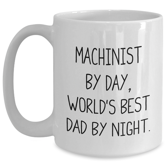 Machinist Gifts from Family - Funny White Coffee Mug for Machinist By Day, World's Best Dad By Night, - Father's Day Unique Gifts for Men Gifts from Family