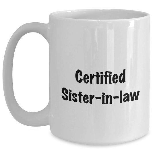 Funny Sister-in-law Gifts, 'Certified Sister-in-law' White Coffee Mug, 11oz or 15oz, Microwave and Dishwasher Safe Gifts from Family