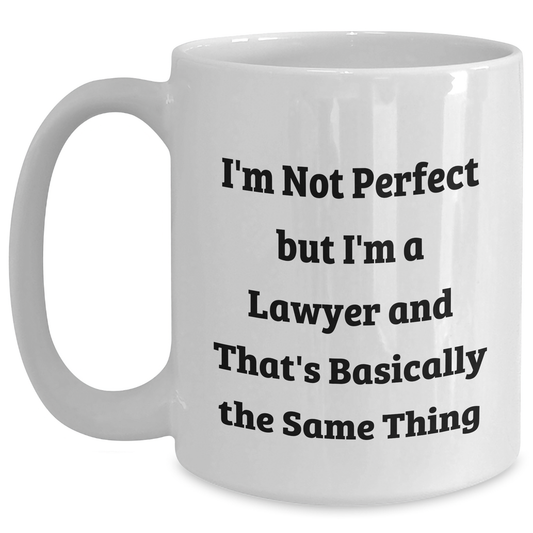 Funny Lawyer Gifts from Friends to Men - White Coffee Mug with 'I'm Not Perfect But I'm A Lawyer' Quote for Father's Day