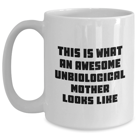 Funny Unbiological Mother Gifts - White Coffee Mug for Dad from Unbiological Mom, This Is What An Awesome Unbiological Mother Looks Like, Unique Father's Day Unique Gifts for Unbiological Mothers