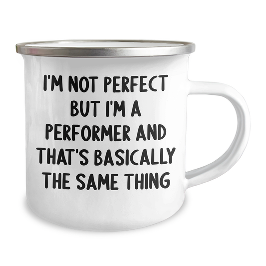 Funny Performer Gifts from Men to Friends on Father's Day, I'm Not Perfect But I'm A Performer And That's Basically The Same Thing Camping Mug