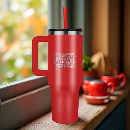 Gift for Dad - Word Art Laser-engraved 40oz Colored Tumbler With Handle