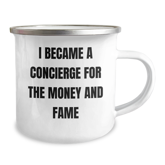 Gifts from Family to Concierge - Camping Mug 'I Became A Concierge For The Money And Fame' - Mother's Day Unique Gifts