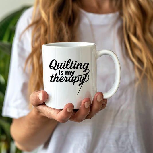 Quilting Is My Therapy Funny Quilter Ceramic Coffee Mug – Gift for Sewing Lovers, Stitchers, and Crafter