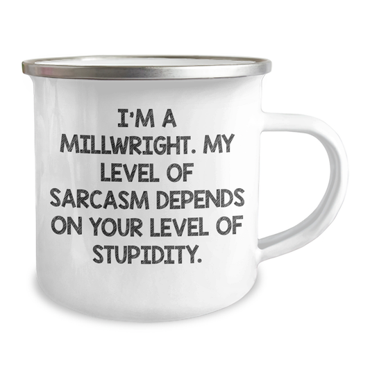 Funny Millwright Gifts for Mother's Day - 'I'm A Millwright, My Level Of Sarcasm...' Camping Mug, Gifts from Men to Women