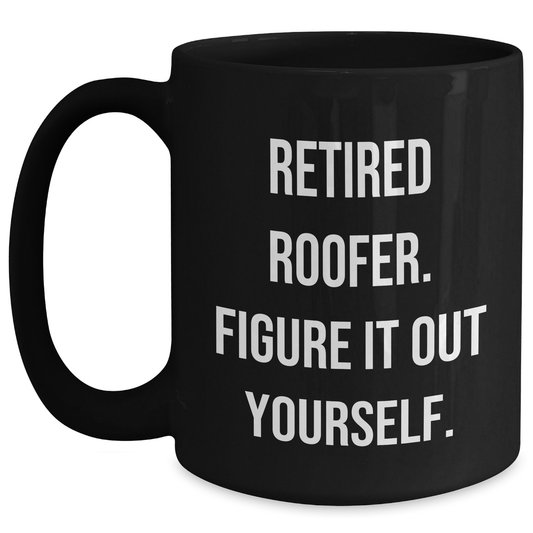 Roofer Humor Gifts from Men for Mother's Day Unique Black Coffee Mug, 'Retired Roofer. Figure It Out Yourself.'