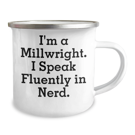 Funny Millwright Gifts, Camping Mug, 'I'm A Millwright. I Speak Fluently In genius.' - Unique Mother's Day Unique Gifts from Friends to Millwrights