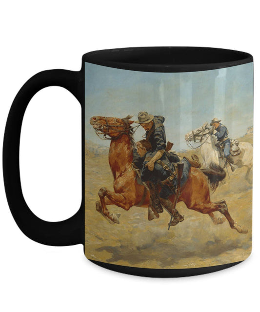 Frontier Trooper - My Bunkie Western Art Black Ceramic 15 oz Mug