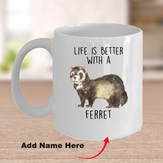 Funny Ferret Custom coffee mug - white ceramic and two tone color -Life Is Better With A Ferret