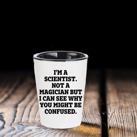 I'm a Scientist. Not a Magician – Funny Shot Glass for Scientists, Lab Techs, and STEM Geeks