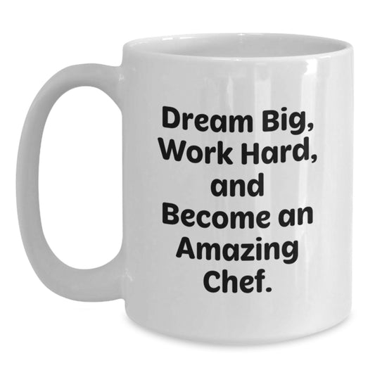 Inspirational Chef Gifts for Men, Funny White Coffee Mug, Gifts from Friends, Christmas Unique Ideas, Dream Big Work Hard Become Amazing Chef Quote