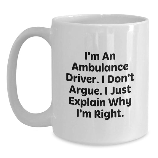 Funny Ambulance Driver Gifts from Men to Ambulance Driver, White Coffee Mug, Christmas Unique Gifts, I'm An Ambulance Driver, I Don't Argue, I Just Explain Why I'm Right.
